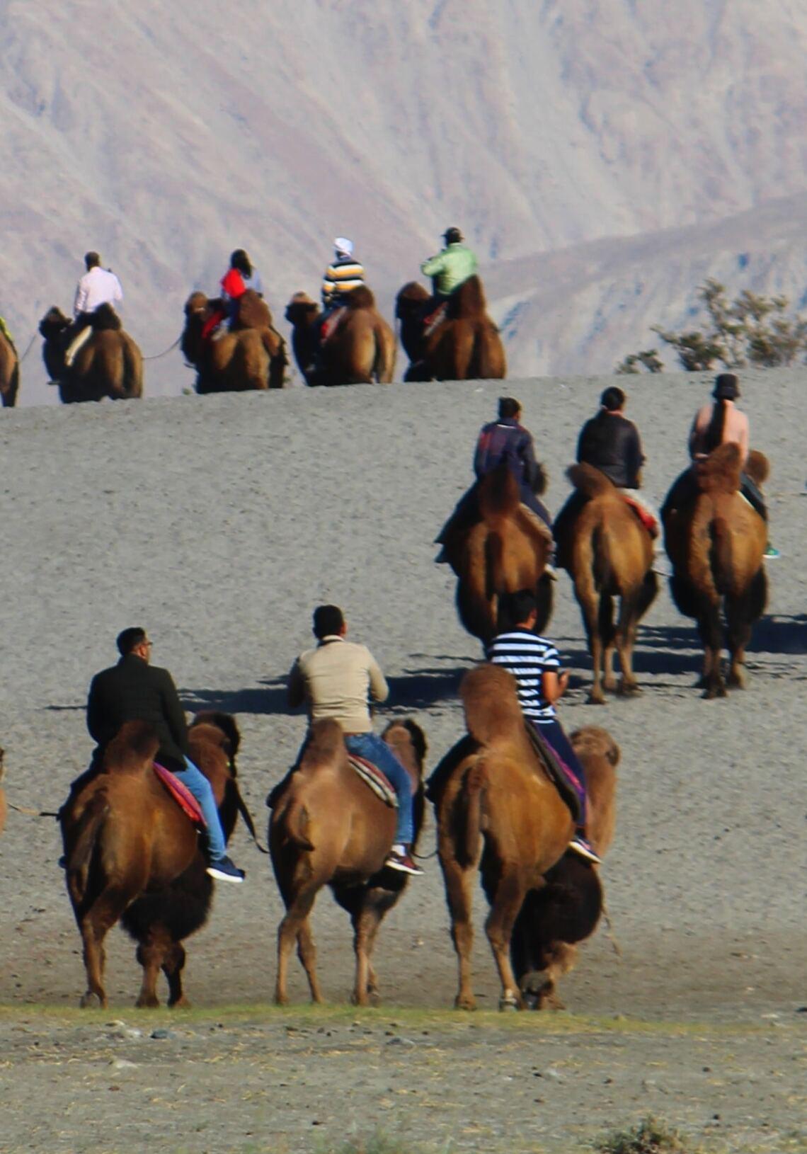 Upon reaching Nubra, head to the Hunder Sand Dunes where you can spend time soaking in the views